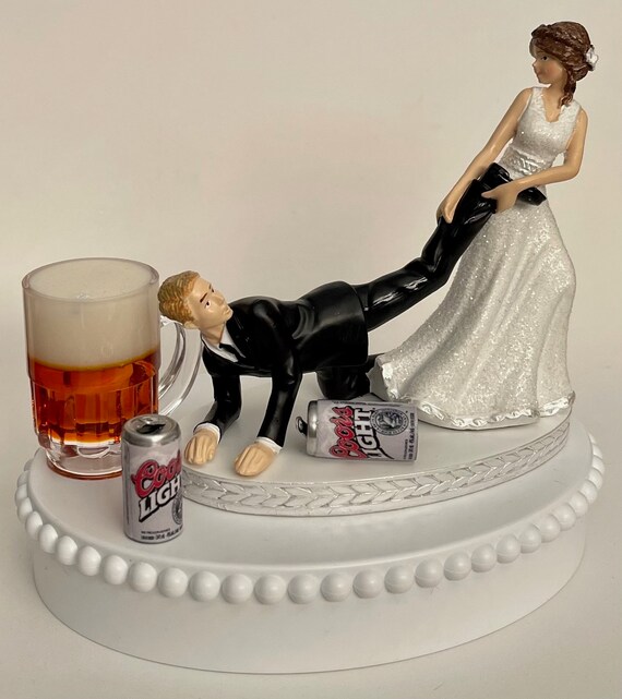 Wedding Cake Topper Coors Light Beer Themed Cans Mug Pulling Etsy
